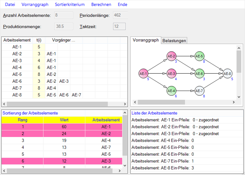 der Arbeitselemente werden verschiedene Prioritätsregeln