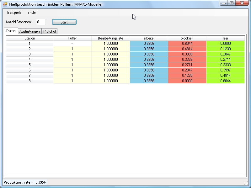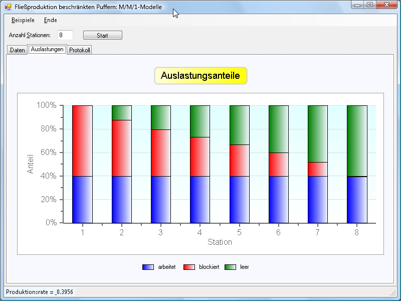 - exponentialverteilte Bearbeitungszeiten an allen Stationen