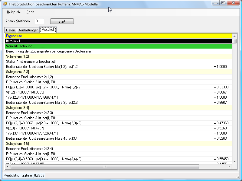 Gesucht ist die maximale Produktionsrate des gesamten Fließproduktionssystems.