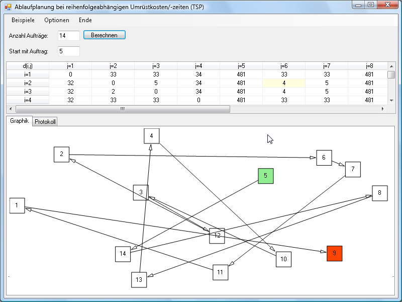 an einer Maschine bei reihenfolgeabhängigen Rüstkosten bzw. Rüstzeiten wird