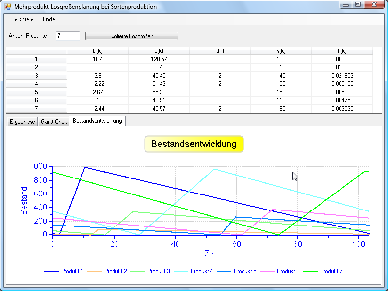 Um dieses Problem zu vermeiden, muß alle Produkte in einem Simultanplanungsmodell gemeinsam betrachten. Das hier verwendete Modell