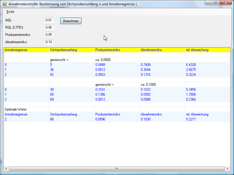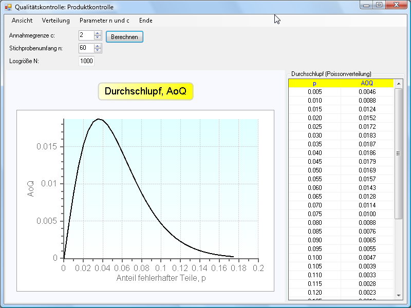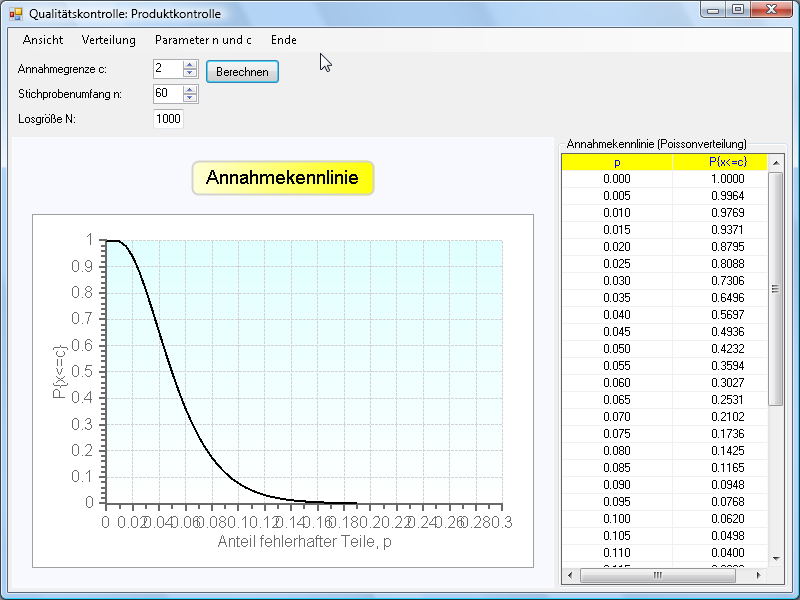 der defekten Stücke in der Stichprobe bestimmt. Die Annahmezahl c gibt an, bis