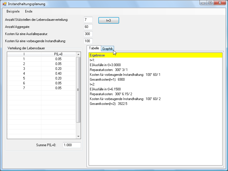 mögliche Instandhaltungsintervall wird die erwartete Anzahl von Ausfällen berechnet.
