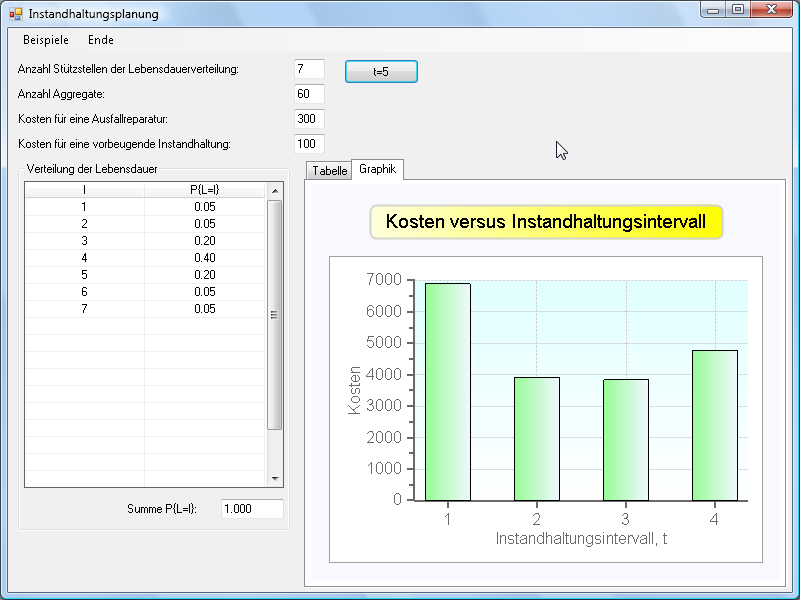 Aggregattyps wird das optimale Instandhaltungsintervall bestimmt. Für jedes