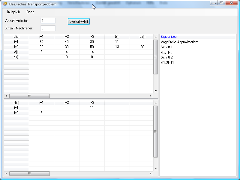 ein Dummy-Nachfrager eingeführt. Die entspechenden Kostenkoeffizienten werden