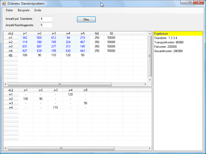 Für die so definierte Standortkombination wird das resultierende klassische Transportproblem