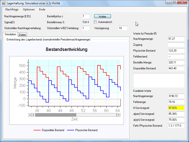 mit normalverteilten Periodennachfragemengen simuliert. Die Standardabweichung