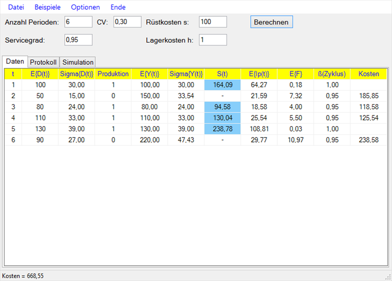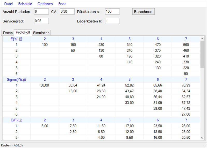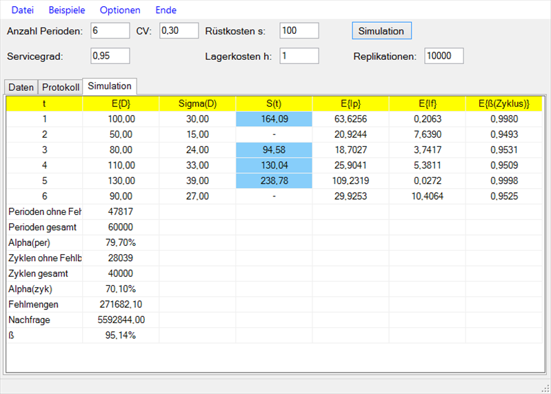 ein. Die Standardabweichungen der Nachfragemengen können periodenspezifisch