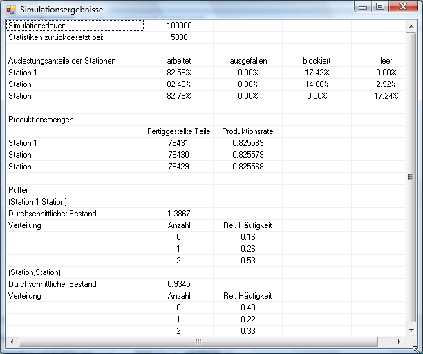 Nach Abschluß der Simulation werden die Ergebnisse angezeigt.