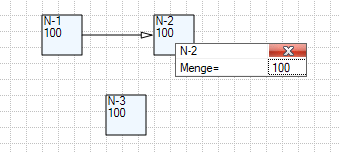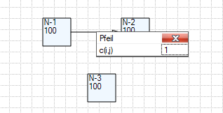 Die Daten eines Knotens oder eines Pfeils können durch Anklicken mit der rechten Maustaste editiert werden. In beiden Fällen wird der Editiervorgang durch Schließen des Fenster ("X") beendet: