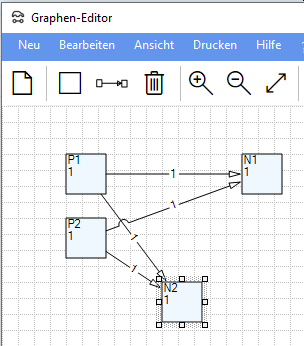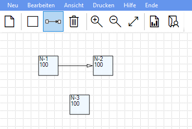Der Graphen-Editor unterstützt die Erzeugung von verschiedenen Netzwerkdarstellungen, z.B. Vorranggraphen (Fließbandabstimmung), Gozintographen (Materialbedarfsrechnung) etc. Es stehen folgende Editiermöglichkeiten zur Verfügung: