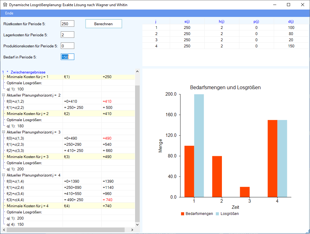 Dynamische Losgrößenplanung: exakte Lösung des Wagner-Whitin-Modells