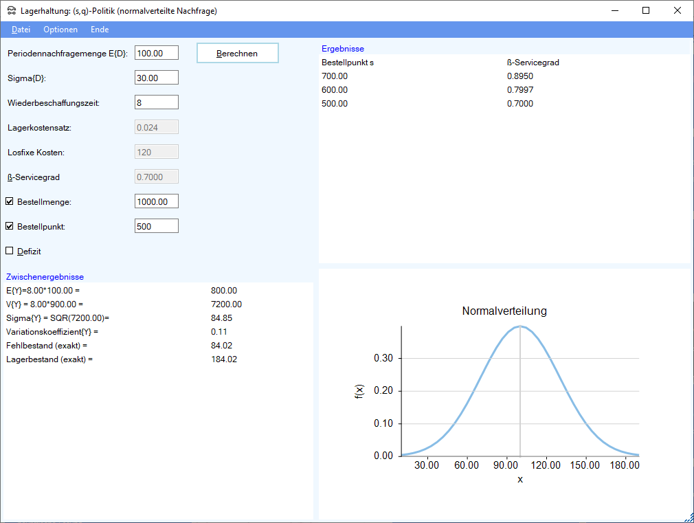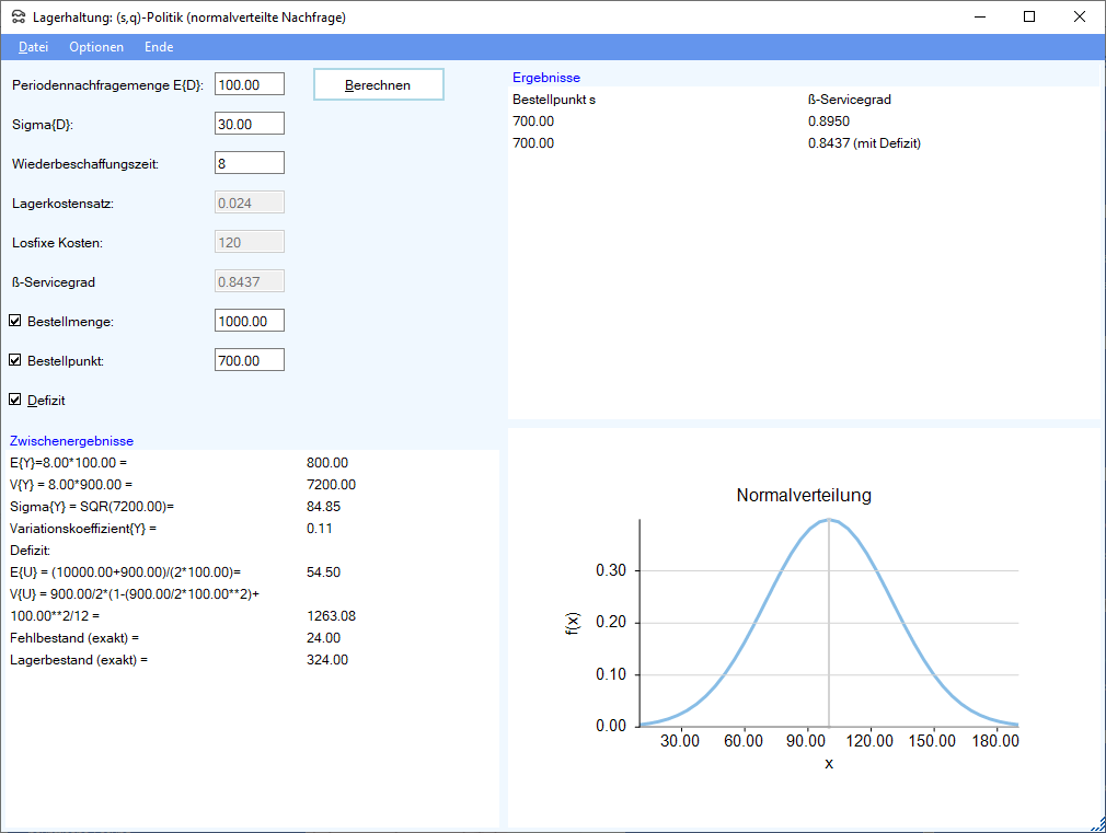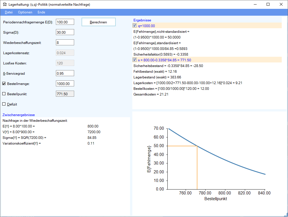 Lagerhaltung: (s,q)-Politik bei normalverteilter Periodennachfragemenge