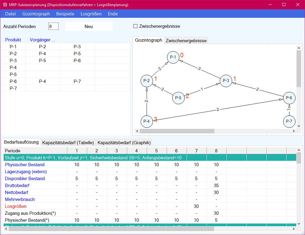 Es wird eine programmorientierte Materialbedarfsrechnung nach dem Dispositionsstufenverfahren durchgeführt. Dieses Konzept entspricht dem derzeitigen MRP-Planungsansatz, wie er in den Standard-PPS-Systemen integriert ist (Sukzessivplanungskonzept).