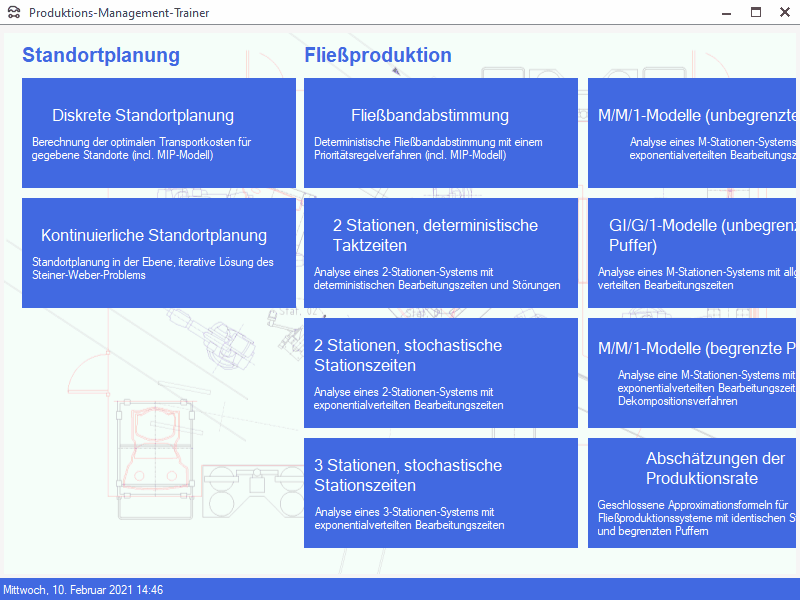 In diesem Modul kann sowohl das Problem (2.) für manuell ausgewählte Standorte als auch das Problem (1.) der Auswahl der optimalen Standortkombination gelöst werden.