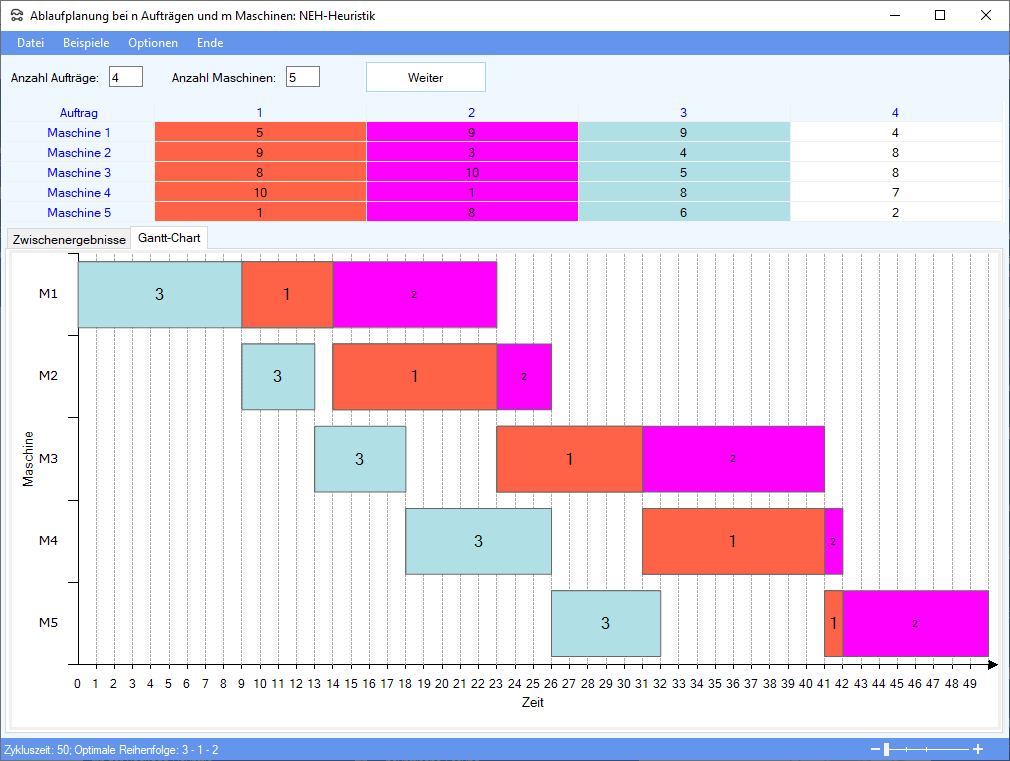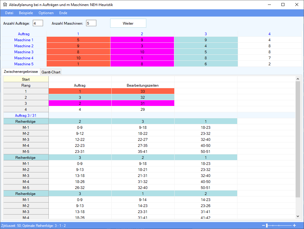 Die NEH-Heuristik läuft wie folgt ab: