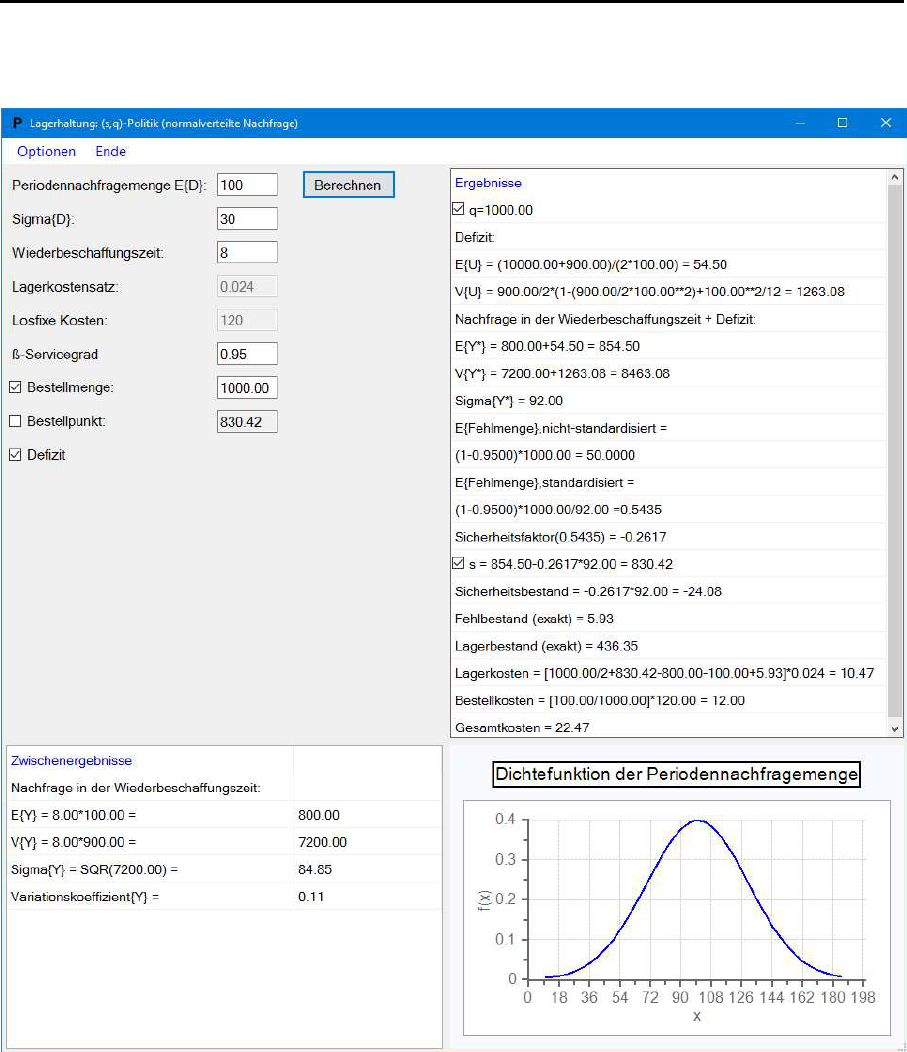 E{Fehlmenge} = 0.05*1000.00/84.85 = 0.589