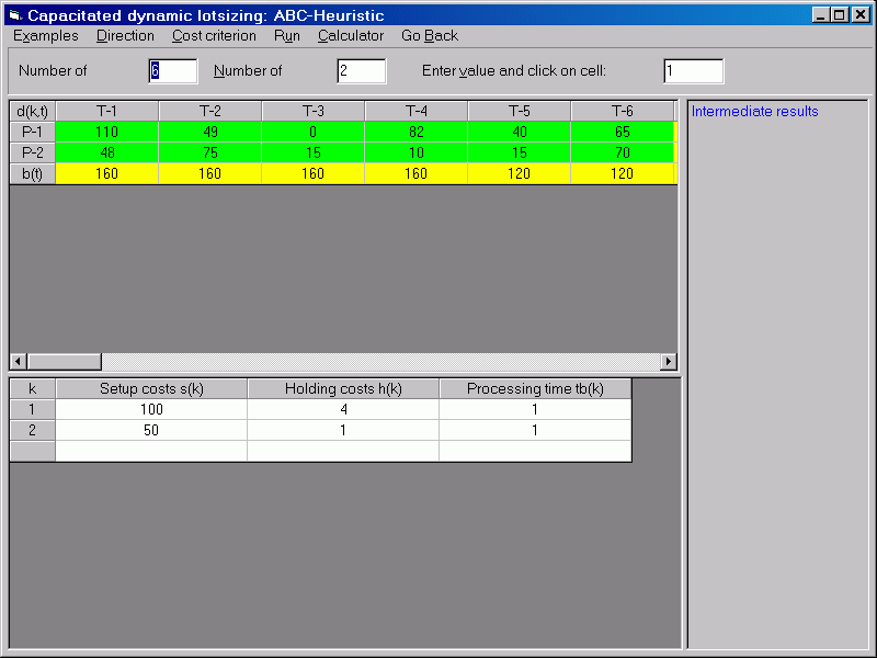 After all data have been entering, the heuristic is started.